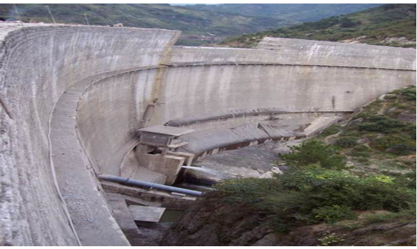 該工程位于勉縣二道河鄉(xiāng)褒河支流沙溝河中段,壩頂寬4.0m、底寬16m、壩高55m、壩頂弧長(zhǎng)220.78m,為變?nèi)碾p曲拱壩。該壩壩體結(jié)構(gòu)復(fù)雜,此雙曲拱壩結(jié)構(gòu)為陜西第一座,技術(shù)含量較高。該工程于1998年9月1日開(kāi)工,2003年1月31日竣工。